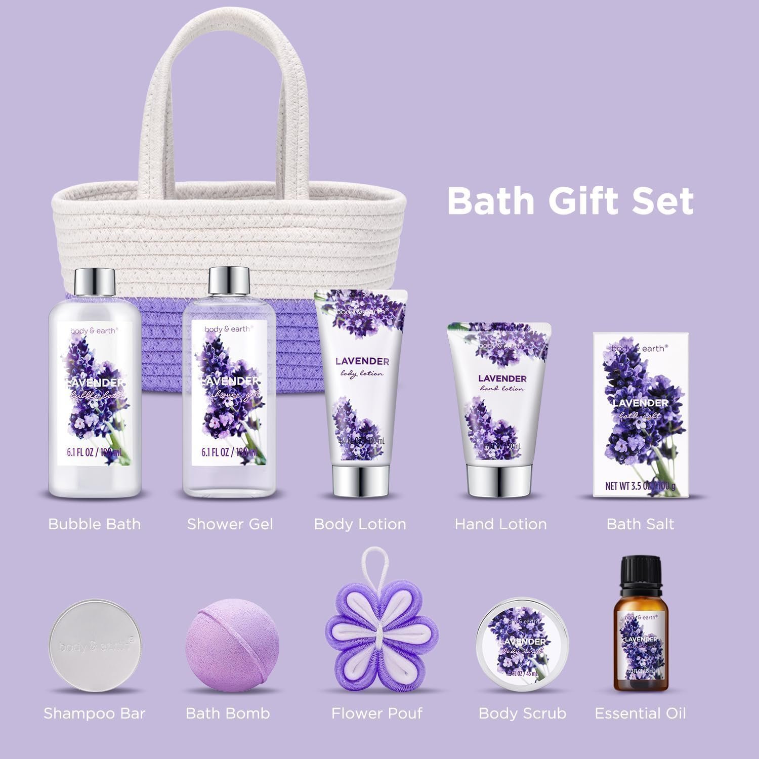 BODY & EARTH Spa Gift Set for Women – Gift Basket 11 Pcs Lavender Bath Set for Women