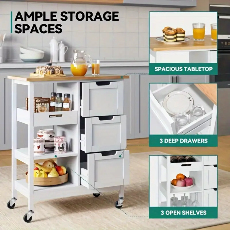 With its eco-friendly design requiring no electricity, the Phabules Rolling Kitchen Island Cart is not just practical but also sustainable. Whether you need additional storage or a mobile workspace, this cart is a must-have for modern kitchens, providing an efficient and stylish solution for everyday needs.